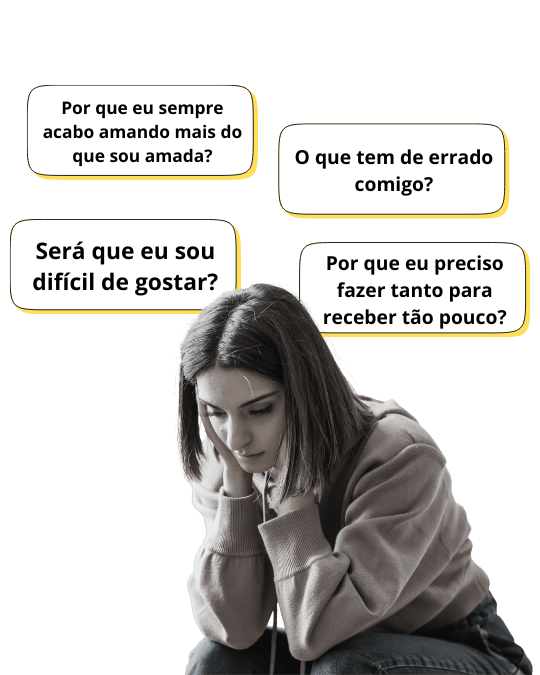 se doar demais, receber migalhas, sentir vazio, se culpar por sentir.